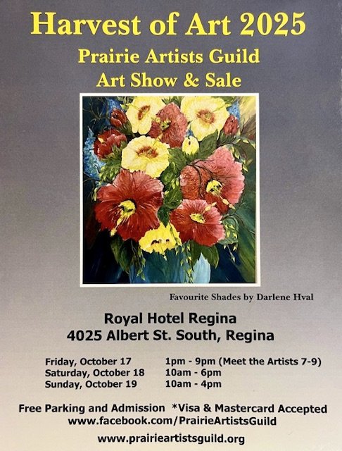 Prairie Artists Guild's Harvest of Art Show & Sale, held on October 17 18 & 19 at the Royal Hotel in Regina, is a showcase of original artworks created in a variety of media and sizes by talented local artists. As a special addition to the Show, each guild member has created their own imaginative version of o funky tree. You are invited to come out and enjoy a feast for the eyes and take a stroll through this one of a kind forest of creativity. Something for everyone. Admission & Parking are free.