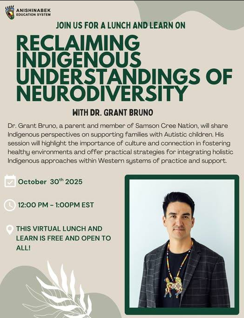 Dr. Bruno, a parent and member of Samson Cree Nation, will share how culture, community, and connection can guide families and educators in creating supportive spaces for Autistic children. This conversation will invite participants to reflect on how Indigenous worldviews can enhance current approaches to learning and well-being.
