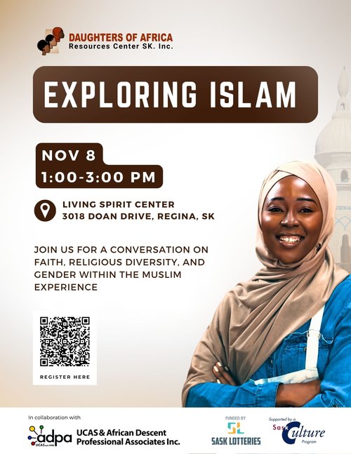 Join us on November 8 (1:00โ3:00 PM) at the Living Spirit Centre, 3018 Doan Drive, Regina for an enlightening and respectful dialogue on faith, religious diversity, and gender within the Muslim experience.