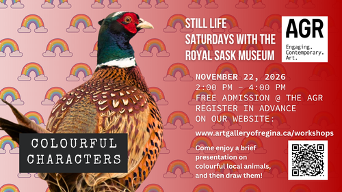 The Royal Saskatchewan Museum is returning to the Art Gallery of Regina with some beautiful mounted creatures for your viewing and drawing pleasure! Meet some truly "Colourful Characters" up close, discover their stories with local biologists, and enjoy sketching them in a relaxed, social atmosphere! We’ll have easels, drawing donkeys, and chairs ready for you—just bring your favourite art supplies and make yourself at home. Reserve your spot for FREE on our website: