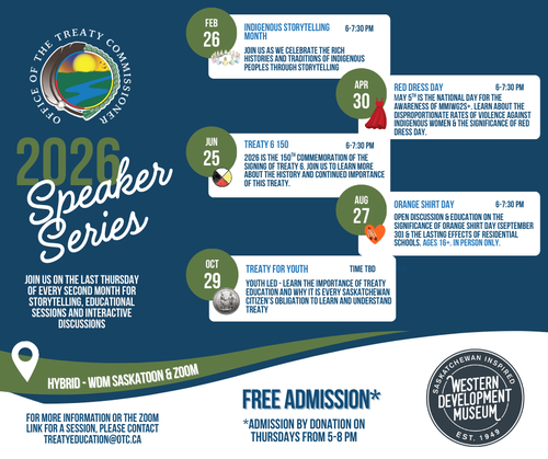 Join the Office of the Treaty Commissioner and the Western Development Museum in an open discussion and education on the significance of the Orange Shirt Day (September 30th) and the lasting effects of residential schools.